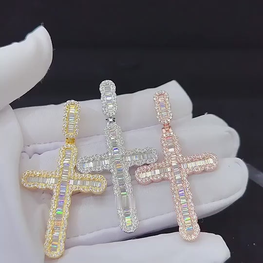 MOISSANITE BAGUETTE CROSS PENDANT