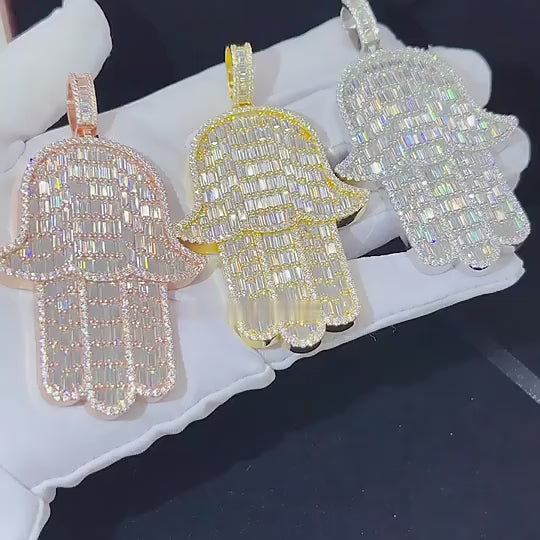 MOISSANITE BAGUETTE HAMSA PENDANT