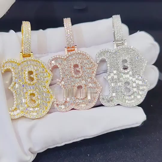 MOISSANITE BAGUETTE LETTER "B" PENDANT