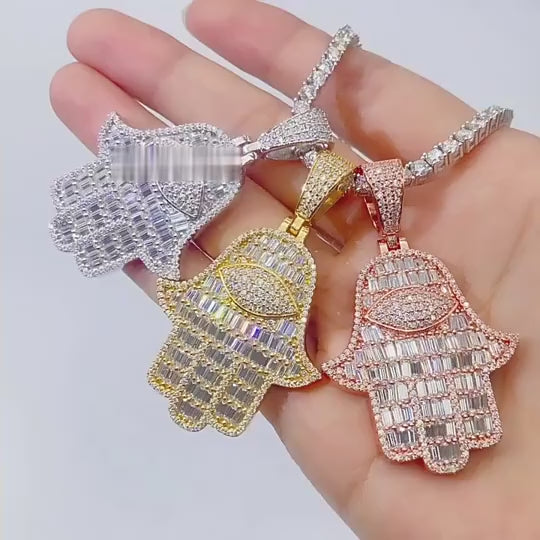 MOISSANITE BAGUETTE MEDIUM HAMSA PENDANT